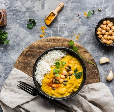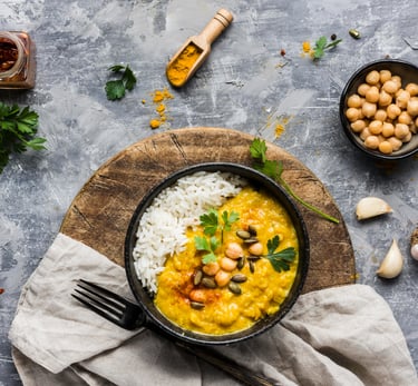 Alimentation personnalisée (céréales, légumes, protéines animales / végétales, fruits, boissons, huiles, épices digestives)